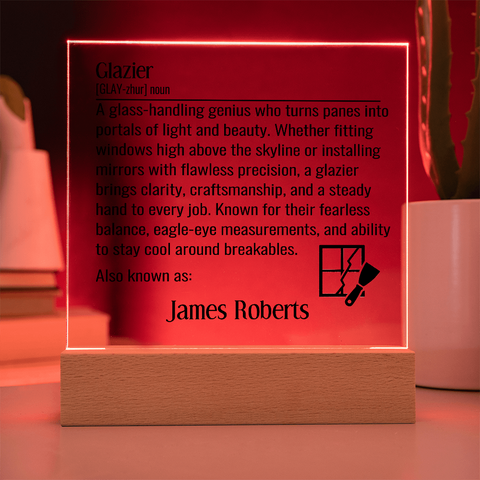 Personalized Glazier Definition Lighted Plaque With Color LED Lighting